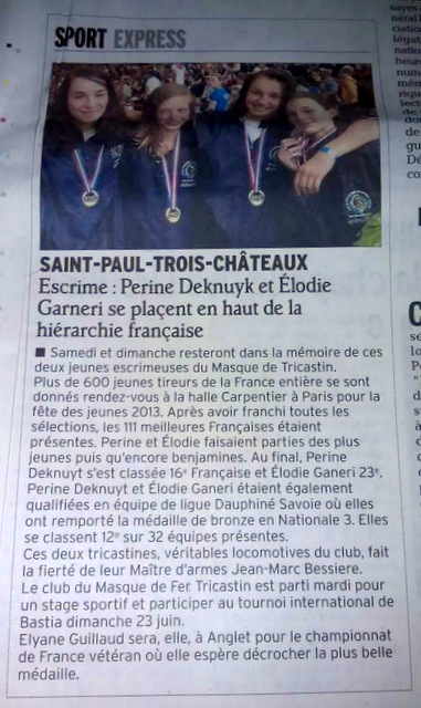C.E. LA RAPIÈRE BASTIA (France) et le Masque de Fer Tricastin.