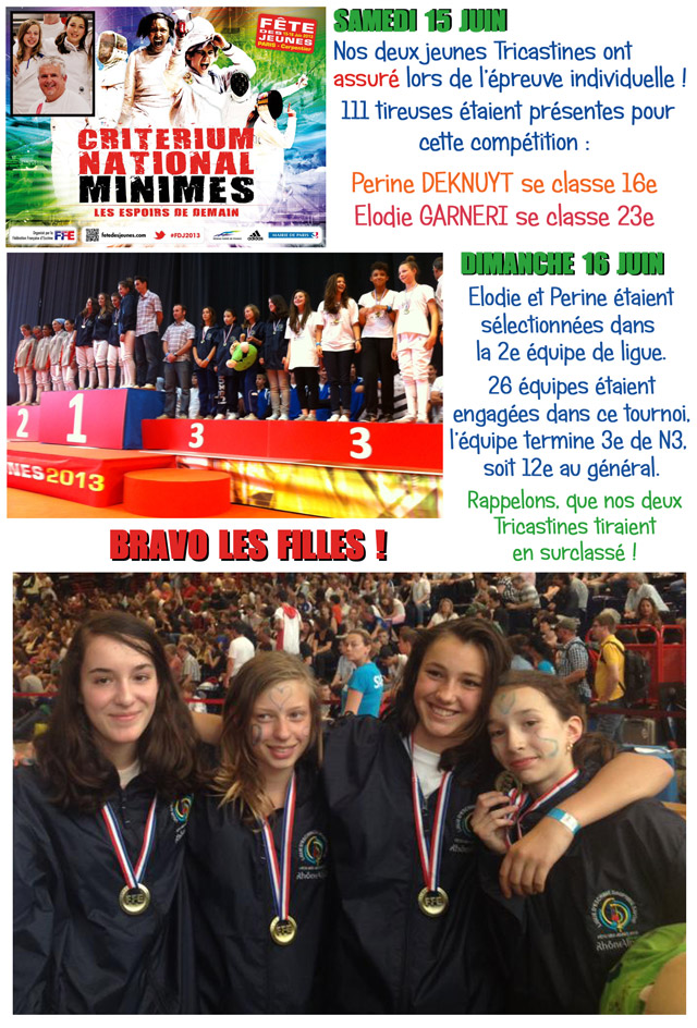 Elodie GARNERI se classe 1e en benjamine, Perine DEKNUYT 1e en minime,
